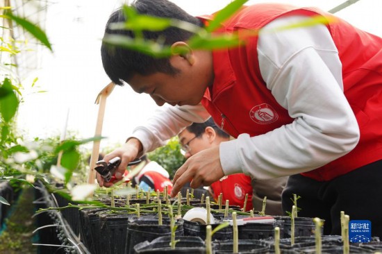 12月5日,西南大学园艺园林学院的学生在进行果苗嫁接比赛。