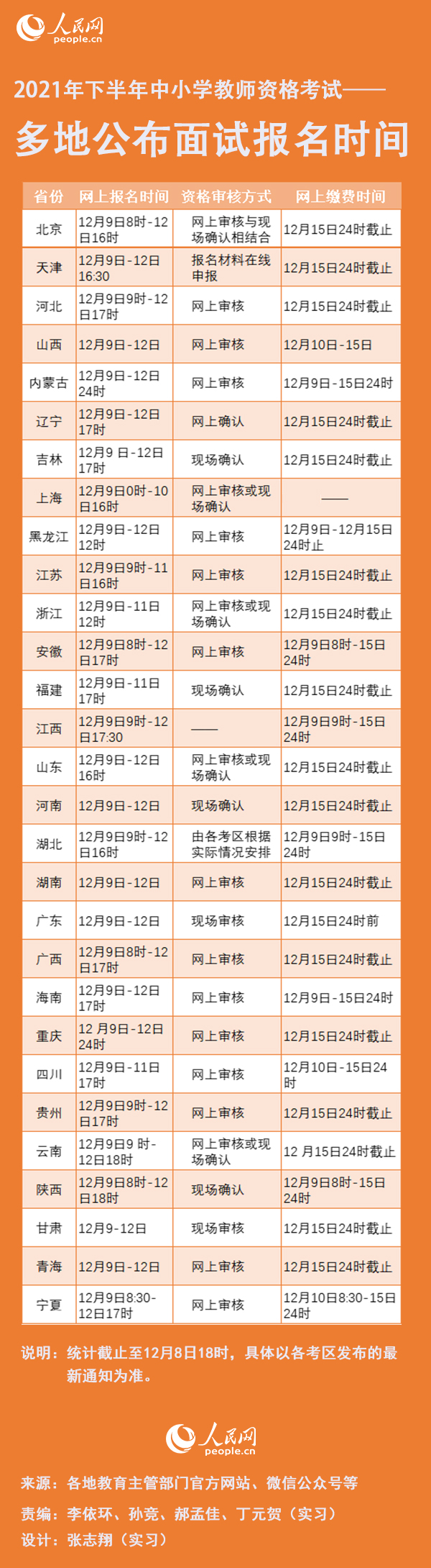 多地公布2021年下半年中小学教师资格考试面试报名时间