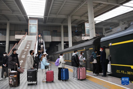 1月17日,旅客在西安站排队乘车。新华社记者 李一博 摄