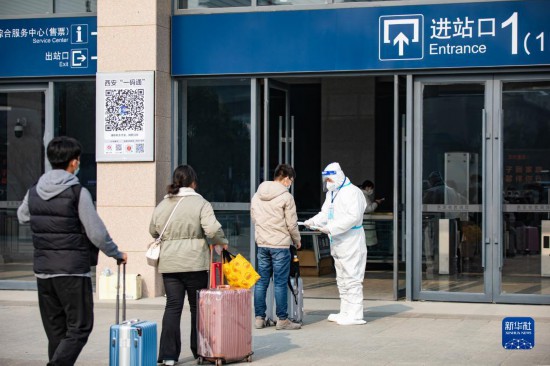 1月17日,旅客在西安火车站有序进站。新华社发(刘翔摄)