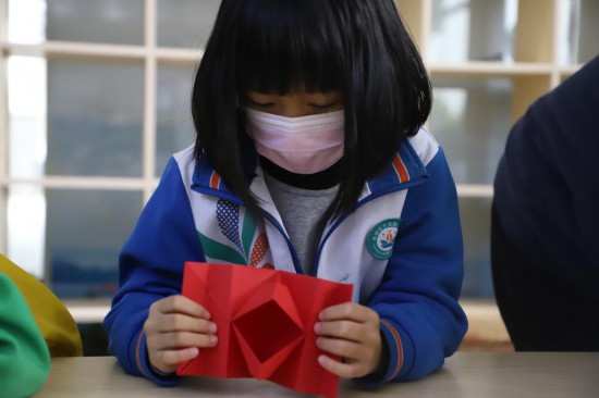 在广州黄埔区九龙第三小学,学生展示自己的折纸成品。新华社记者 胡拿云 摄