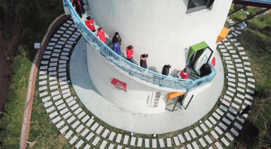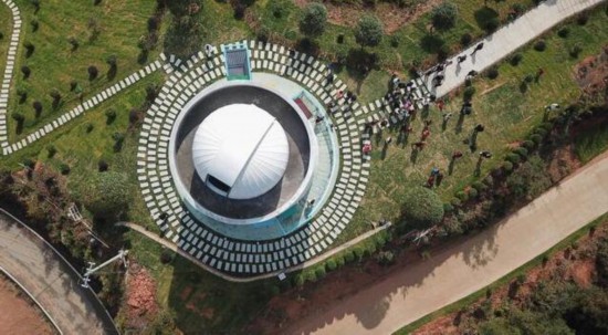1月19日,学生在湖南省浏阳市小河乡的星河天文台参观(无人机照片)。新华社记者 陈泽国 摄