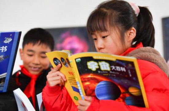 1月19日,在湖南省浏阳市小河乡的星河天文台,学生阅读天文科普图书。新华社记者 陈泽国 摄