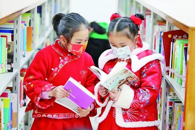 2月3日,两名小朋友在安徽省淮北市图书馆读书。新华社发