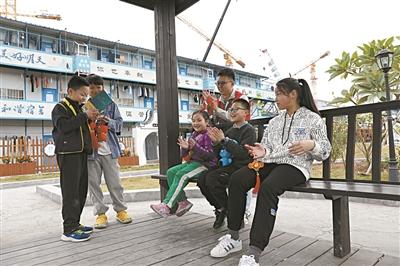 春节期间,许多工友坚守岗位、连续施工,为了能和家人团聚,不少工友将留守老家的孩子接到广州来过年。孩子们住在项目工友村,和坚守工作岗位的爸爸妈妈一起过春节。