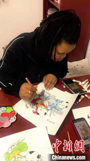没画完的年画,唐星星便“打包”回宿舍,春节期间,她再次拿出颜料、画笔,对照着网上搜到的年画图案,认真涂色,回味和感受浓浓的中国“年味”。