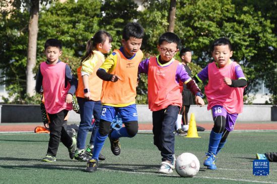 1月18日,贵州省仁怀市实验小学的学生在进行足球分组对抗赛。新华社发(陈勇摄)