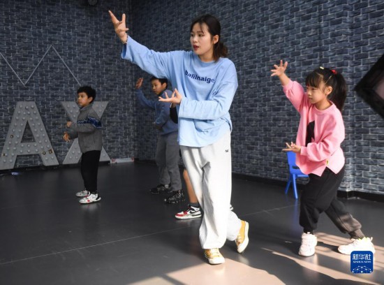1月19日,在浙江省湖州市吴兴区飞英街道墙壕里社区,学生们参加街舞体验课。新华社记者 徐昱 摄