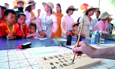 广西柳州柳江区穿山镇高平村,志愿者为村民书写家训家规。新华社发