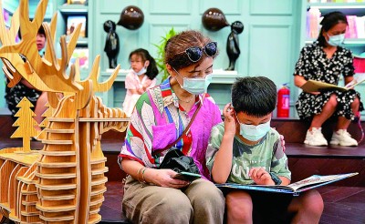 在陕西西安钟楼书店内,家长带领孩子阅读。新华社发