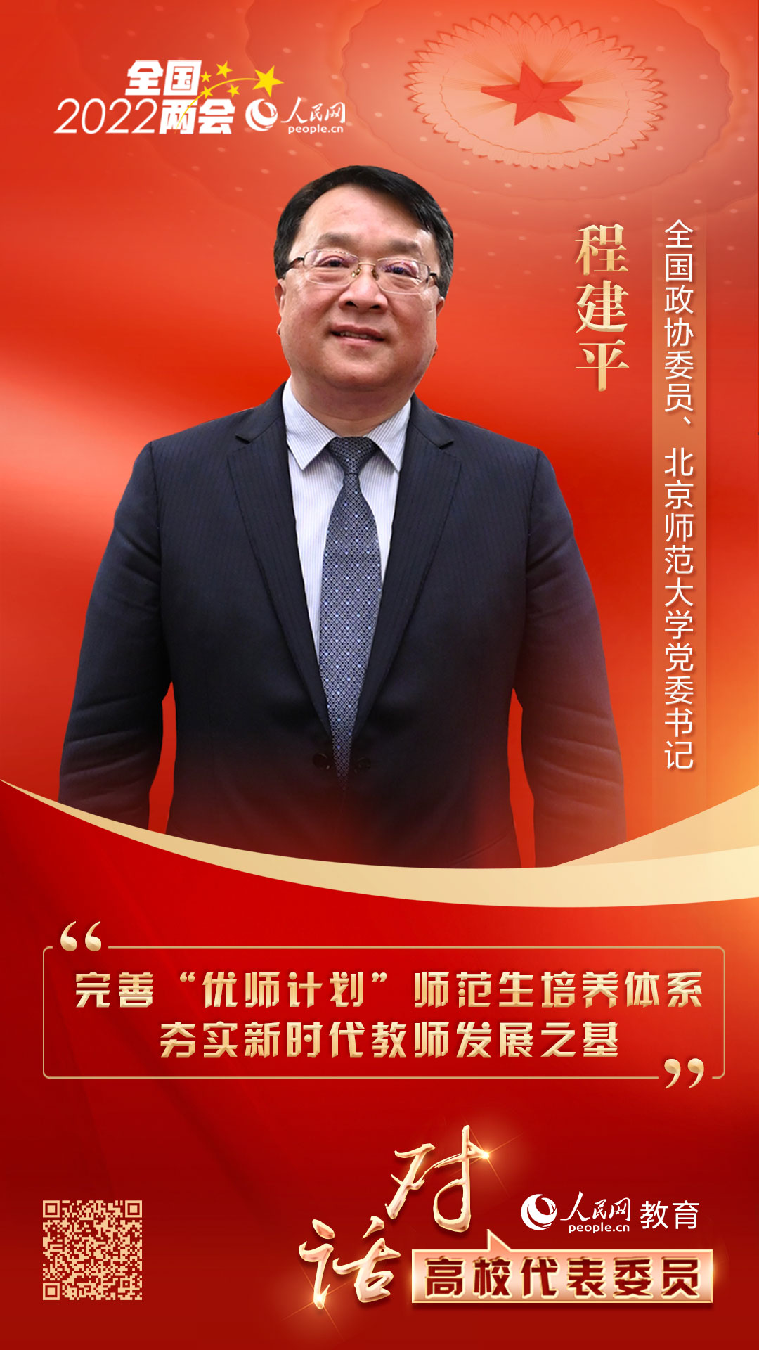 好博体育北京3月4日电 (记者孙竞)教师是立教之本,兴教之源。2021年7月,教育部等九部门启动实施“中西部欠发达地区优秀教师定向培养计划”(简称“优师计划”)。今年两会期间,全国政协委员、北京师范大学党委书记程建平建议,将“优师计划”师范生纳入国家人才发展规划,作为中西部欠发达地区教育领域的后备人才队伍,确保长期稳定的职业发展支持。