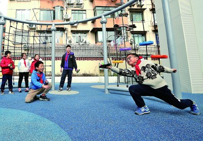 上海市徐汇区凌云街道凌云新村社区,孩子们在一起玩耍。新华社发