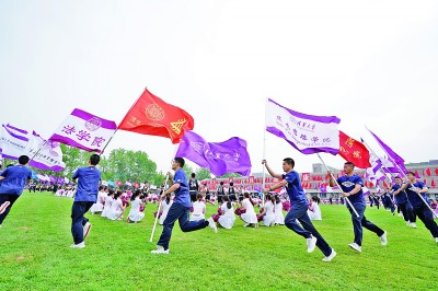清华大学学生在马约翰杯学生田径运动会开幕式上表演。新华社发