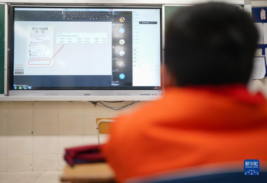 3月21日,蒲芸帆在教室内跟着“空中课堂”学习。新华社记者 丁汀 摄