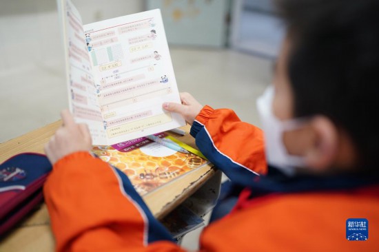 3月21日,蒲芸帆在教室内跟着“空中课堂”学习。新华社记者 丁汀 摄