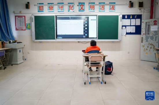 当日,上海市杨泰实验学校四年级六班的蒲芸帆照常从学校宿舍醒来,用完早餐,走进教室开始一天的学习生活。与以往不同的是,教室里只有他一名学生。由于留校住宿等原因,蒲芸帆成了班级里唯一需要在校参与线上学习的学生。据了解,杨泰实验学校共有十多名学生因各种原因需要留校参与线上学习。学校了解情况后第一时间制定了方案,在遵守防疫政策、严格落实疫情防控措施的前提下,安排居家照护存在困难的学生到校参加线上教学。