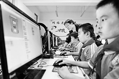 河北省滦州市第四实验小学老师在下午放学后指导学生练习计算机编程。新华社发