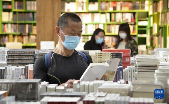 4月21日,读者在宛平古城内的和平书店选购图书。