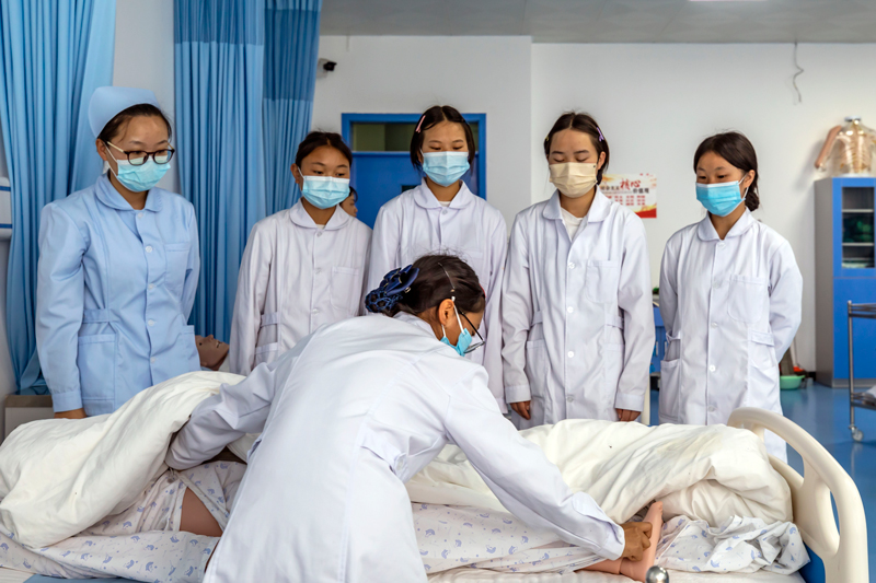 2022年4月27日,学生在贵州省黔西市中等职业学校进行中医护理技能实训。新华社发(范晖摄)
