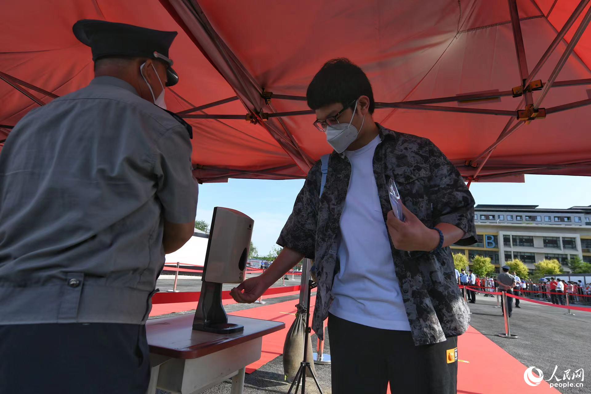 6月7日,北京市人大附中通州校区考点,考生进入考场前,对手部进行消杀。好博体育记者 翁奇羽摄