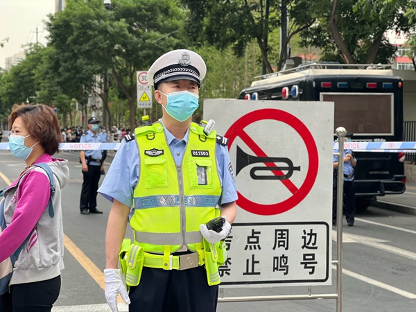高考首日,兰州市公安局交警支队东岗大队出动28辆警车、46辆警用摩托车、100余名警力,在6个考点所在道路以外的主次干道十字路口设置“高考直通车”和“分流宣传岗”,一边通过远端分流车辆、宣传高考期间“绿色出行”等安全提示,一边现场对遇到出行困难紧急求助的考生提供“绿色送考”服务,确保考生安全、快速、准时抵达考场。截至6月7日中午12时,该大队共帮助求助考生25名。