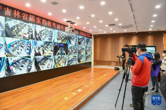 6月7日,在吉林省国家教育考试考务指挥中心,媒体拍摄监控画面。