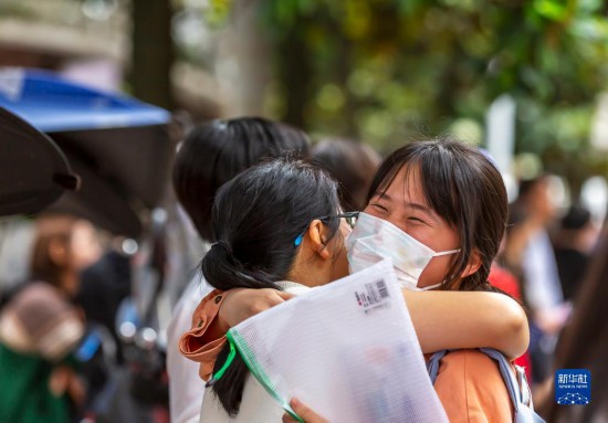 6月8日,在贵州省黔西一中考点,考生与老师深情相拥。