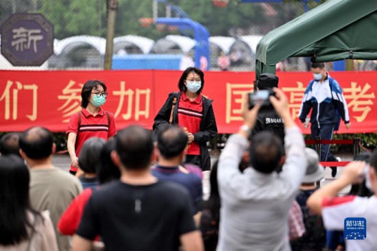 6月10日,考生走出北京师范大学附属实验中学考点。
