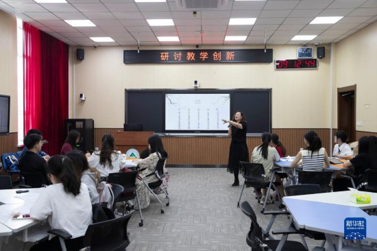 6月10日,在东北林业大学的教室中,熊辉和学生进行非遗对外翻译主题的分享讨论。