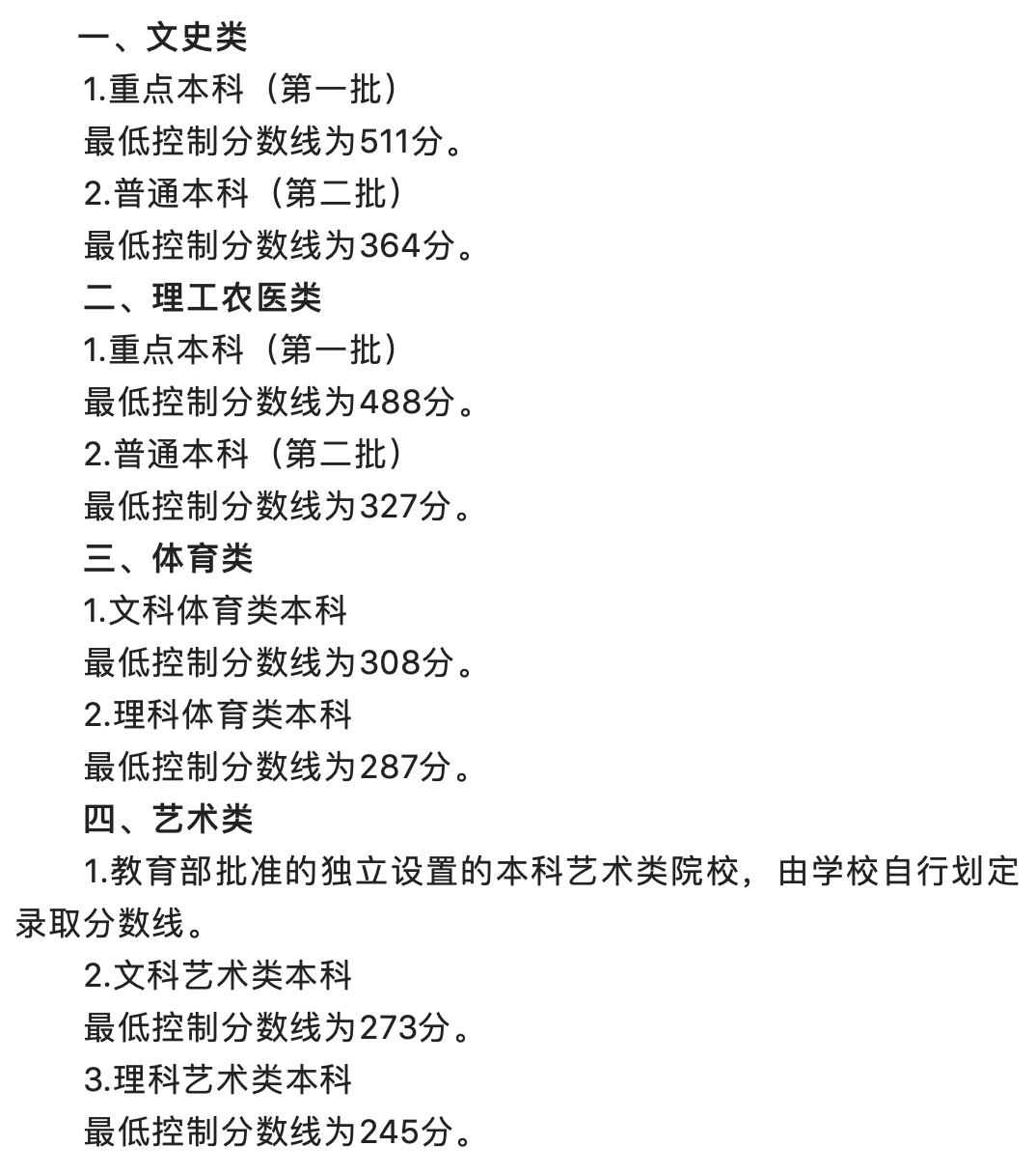 2022年吉林省普通高考本科各批次录取最低控制分数线