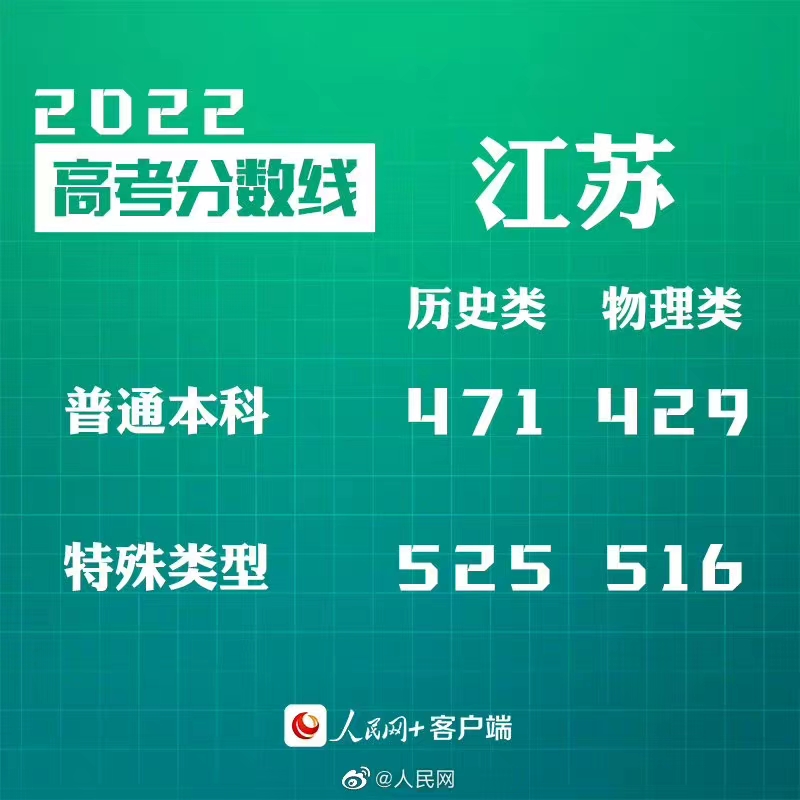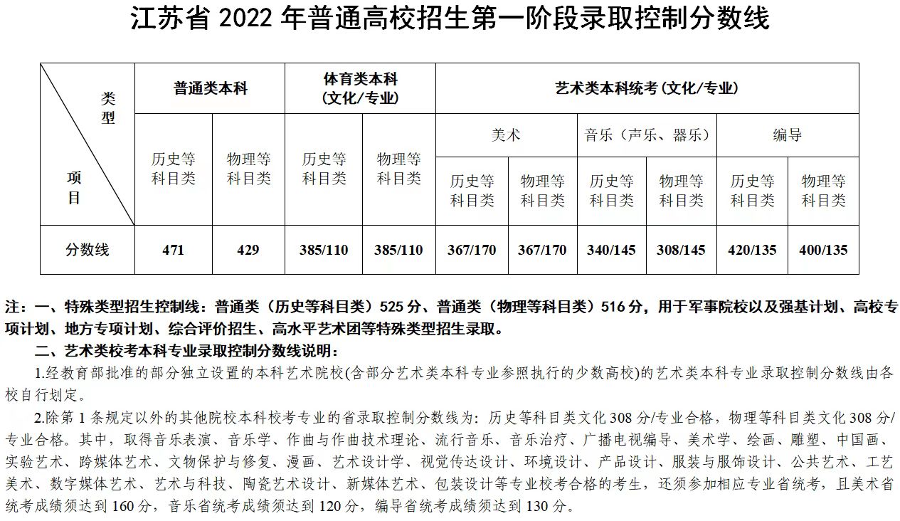 2022江苏高考分数线发布:普通本科历史类471分、物理类429分
