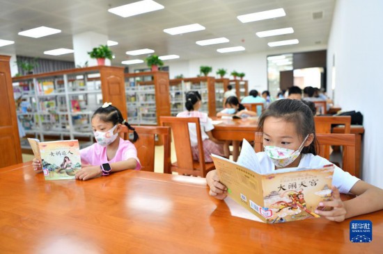 7月12日,在湖北省襄阳市保康县图书馆少儿阅读室,孩子们在阅览图书。