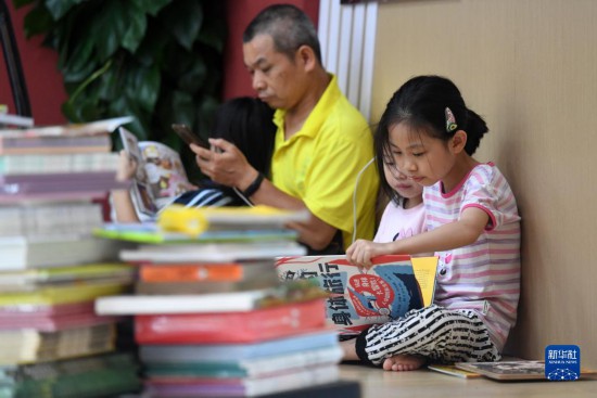进入暑假,广西南宁市不少学生来到书店阅读,享受书香假期。