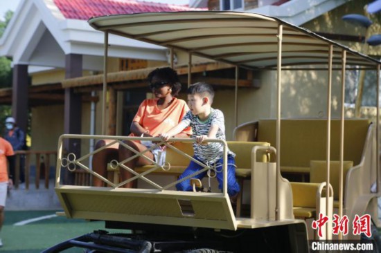 留学生与参加夏令营的小朋友交谈。 杨萱 摄