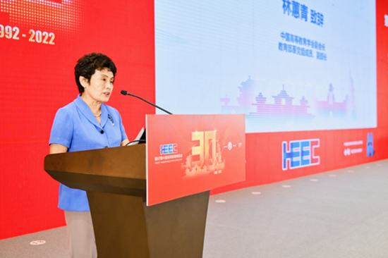 中国高等教育学会副会长、教育部原副部长林蕙青致辞。中国高等教育学会供图