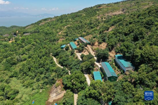 这是位于嵛山岛上的福鼎市特色农业产业示范基地的山羊养殖场(8月5日摄,无人机照片)。