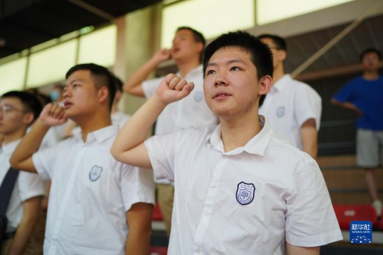 在位于南昌的江科附中高中部毕业典礼上,刘熙鸿参加成人礼宣誓(8月13日摄)。