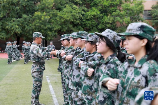 新学期来临,安徽省淮北市的高中组织新生开展军训,锻炼身体素质,磨砺意志品质。