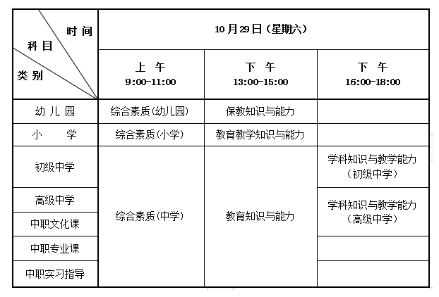 2022年下半年中小学教师资格考试(笔试)日程安排表