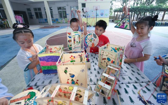 当日,浙江省湖州市长兴县画溪街道长桥中心幼儿园开展“月圆人圆 幸福童年”迎中秋活动,孩子们通过利用废旧物品创作环保创意画、自制桂花月饼、彩绘灯笼等方式,了解中秋节传统习俗,感受传统文化魅力,喜迎中秋佳节。