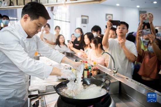 在团队教师看来,烹饪是技术,也是文化。每教授一道菜的烹饪技艺,他们都会向学生讲解楚菜背后的故事。“牢记家乡味道,传承楚菜故事,是我们义不容辞的责任。”湖北楚菜研究院院长邹志平说。