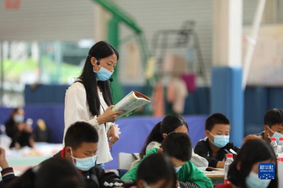 9月14日,在石棉县王岗坪乡,老师在国家能源集团大渡河大岗山公司提供的场地为学生们讲课。