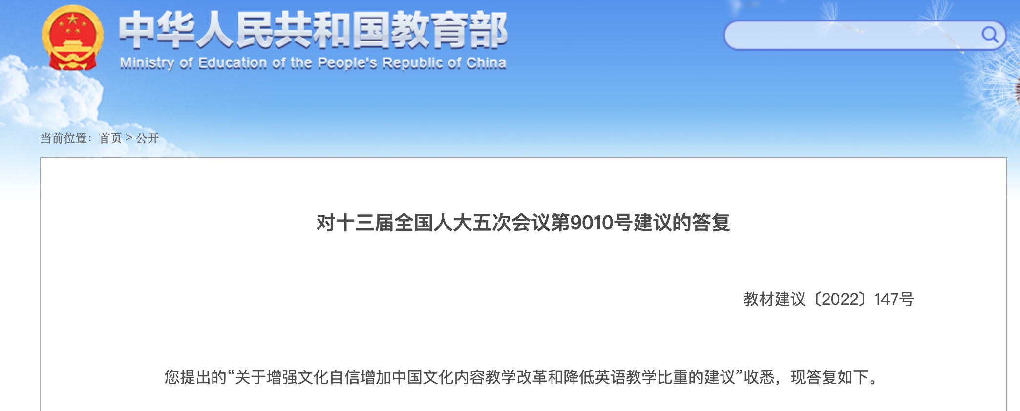 对此,教育部在答复中表示,外语是学生德智体美劳全面发展的重要组成部分,有助于培养和发展学生语言能力、文化意识、思维品质、学习能力等核心素养,培养学生中国情怀、国际视野和跨文化沟通能力。