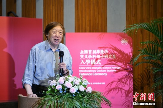 9月27日,中国首届非物质文化遗产学交叉学科硕士研究生入学仪式在天津大学冯骥才文学艺术研究院举行。图为院长冯骥才在新生入学仪式上致辞。 中新社记者 佟郁 摄
