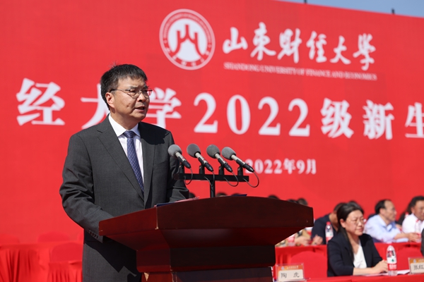 山东财经大学校长赵忠秀在2022级新生开学典礼上讲话。校方供图