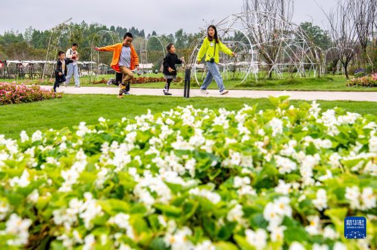 10月5日,在天华百卉园内,小朋友在户外玩耍。
