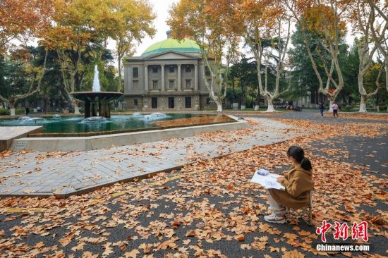 东南大学的学生在校园内写生。中新社记者 泱波 摄