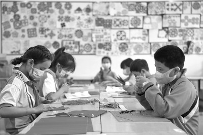 自“双减”政策实施以来,安徽多地学校开展劳动教育与实践、艺术类、体育类、益智类等种类多样的课后服务活动。学生在进行剪纸创作。 新华社发