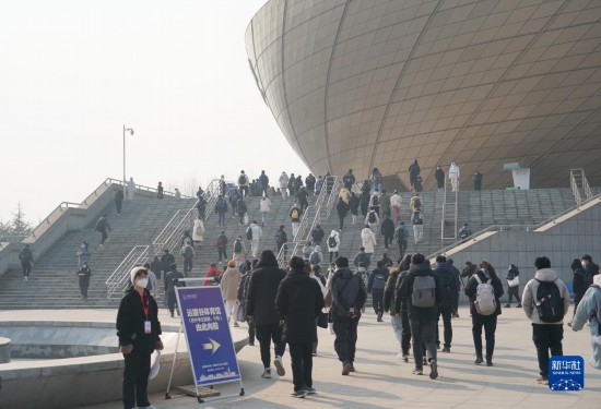 12月24日,在西安电子科技大学考点,考生前往校体育馆午餐休息。