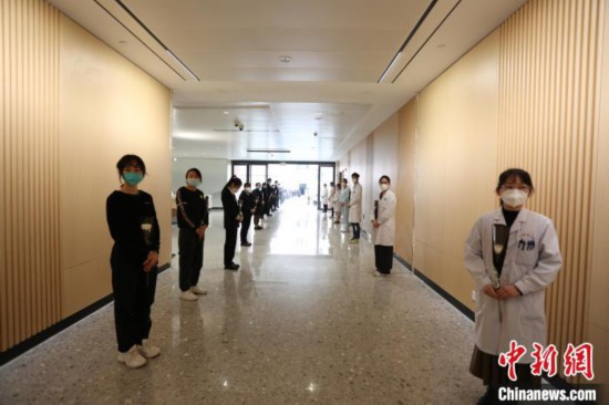图为捐献者离开ICU病房前,科室医生及其生前同学老师向其默哀致敬。 广西医科大学第二附属医院供图